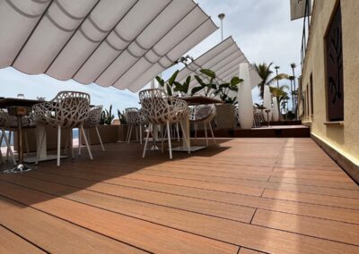 La tarima sintética, también conocida como tarima composite, está fabricada a partir de una mezcla de fibras de madera y polímeros reciclados. Este material combina la estética cálida de la madera natural con la durabilidad de los materiales más avanzados.