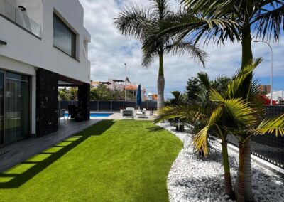 En una isla como Tenerife, donde el clima es cálido durante todo el año, el césped natural requiere un alto consumo de agua y cuidados constantes. El césped artificial, en cambio, permite disfrutar de un espacio verde perfecto sin necesidad de riego ni mantenimiento intensivo.